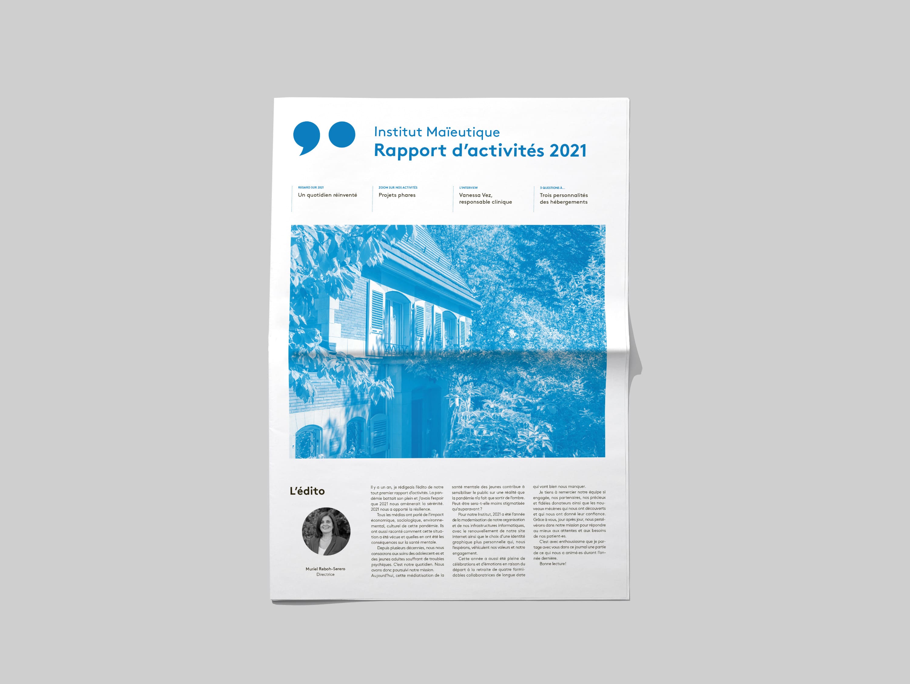 Plates-Bandes a dessiné la nouvelle identité visuelle de l’Institut maïeutique et réalisé son site internet. L’agence rédige et édite chaque année le rapport annuel sous forme de journal.